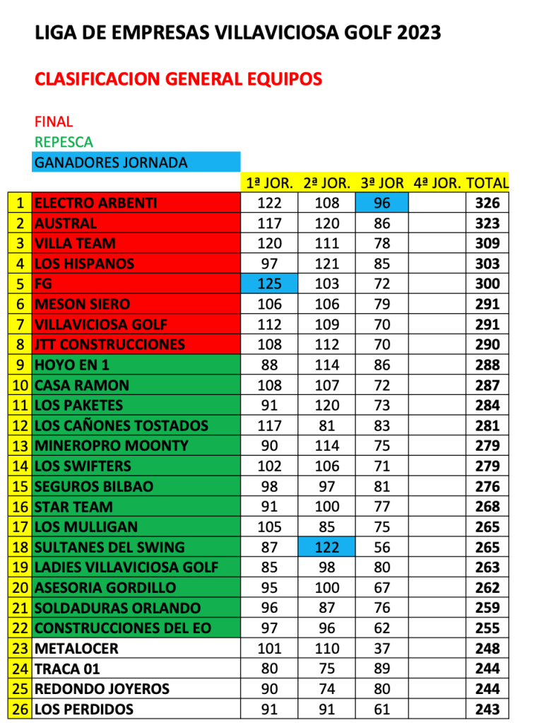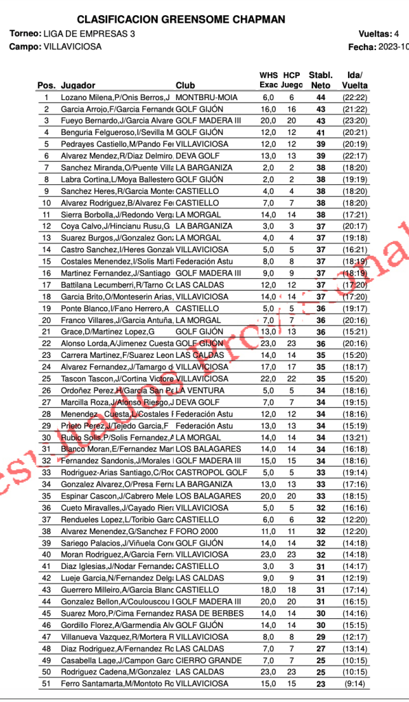 Resultados 3ª jornada LIGA EMPRESAS 2023 / Villaviciosa Golf
