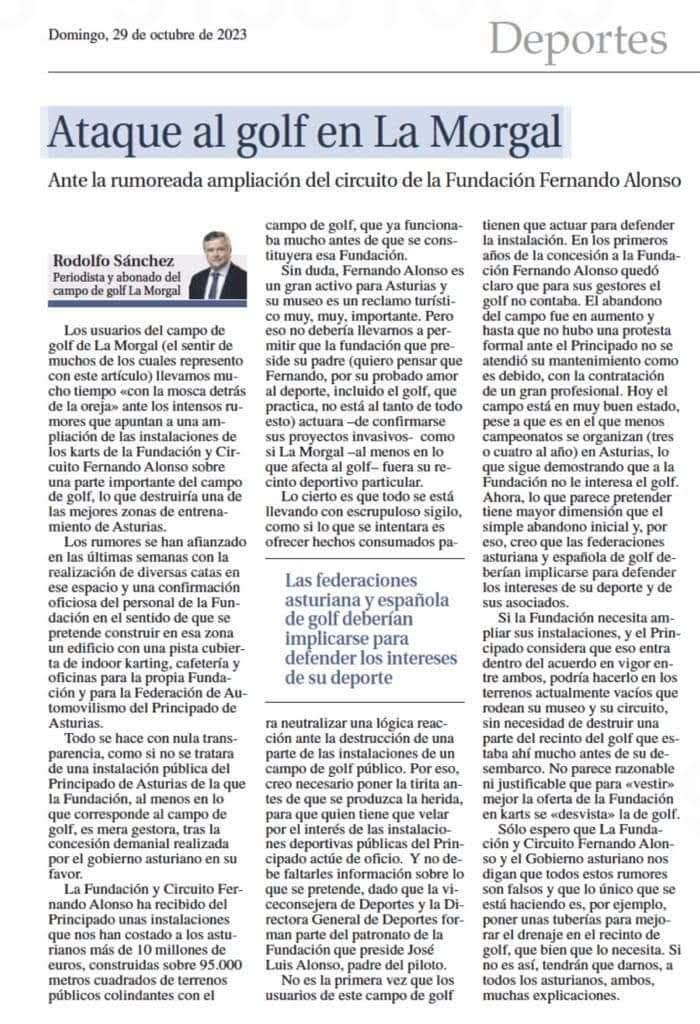 Rodolfo Sanchez es abonado de la Morgal Golf y periodista , nos habla sobre la ampliación de la Fundación Fernando Alonso.