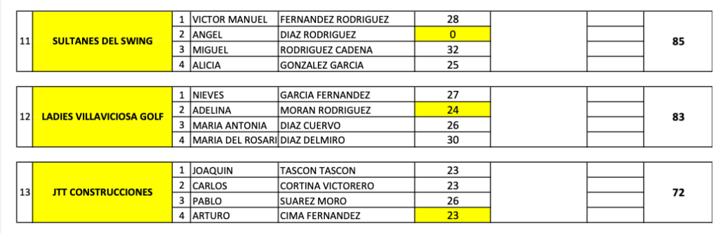 RESULTADOS REPESCA LIGA EMPRESAS 2023 / VILLAVICIOSA GOLF
