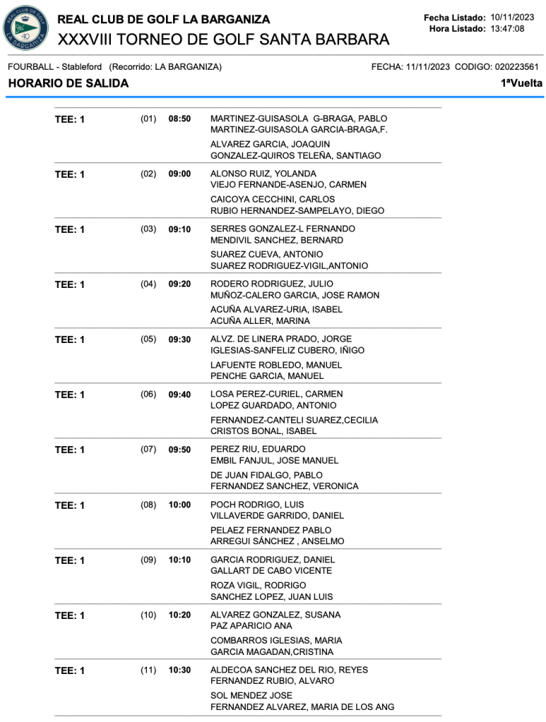 Salidas sábado XXXVIII torneo Santa Barbara 2023 / RCG Barganiza por Golf por Asturias en 11 noviembre, 2023 Compártelo: Compartir en X (Se abre en una ventana nueva) X Comparte en Facebook (Se abre en una ventana nueva) Facebook Me gusta Cargando...