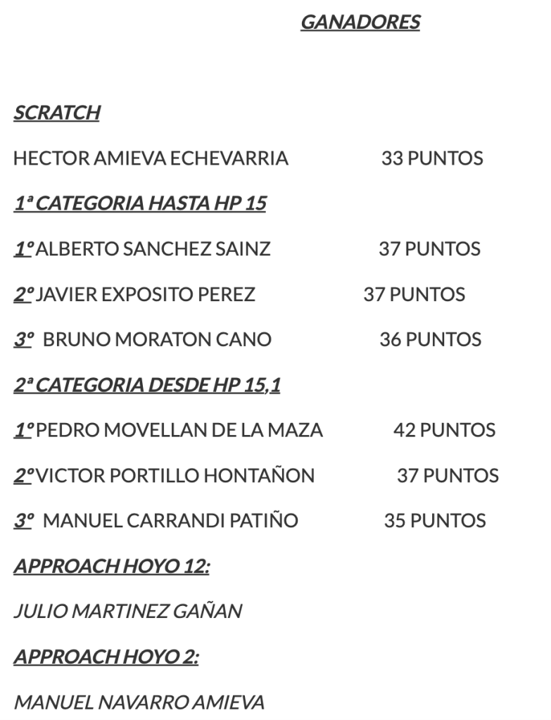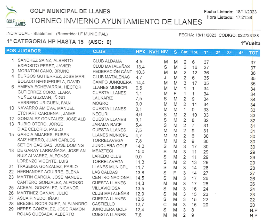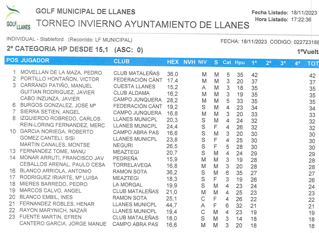 Resultados torneo Invierno 2023 Ayto. Llanes / C.M. Golf Llanes por Golf por Asturias en 18 noviembre, 2023 GANADORES CLASIFICACION 1ª CATEGORIA CLASIFICACION 2ª CATEGORIA Compártelo: Compartir en X (Se abre en una ventana nueva) X Comparte en Facebook (Se abre en una ventana nueva) Facebook Me gusta Cargando...