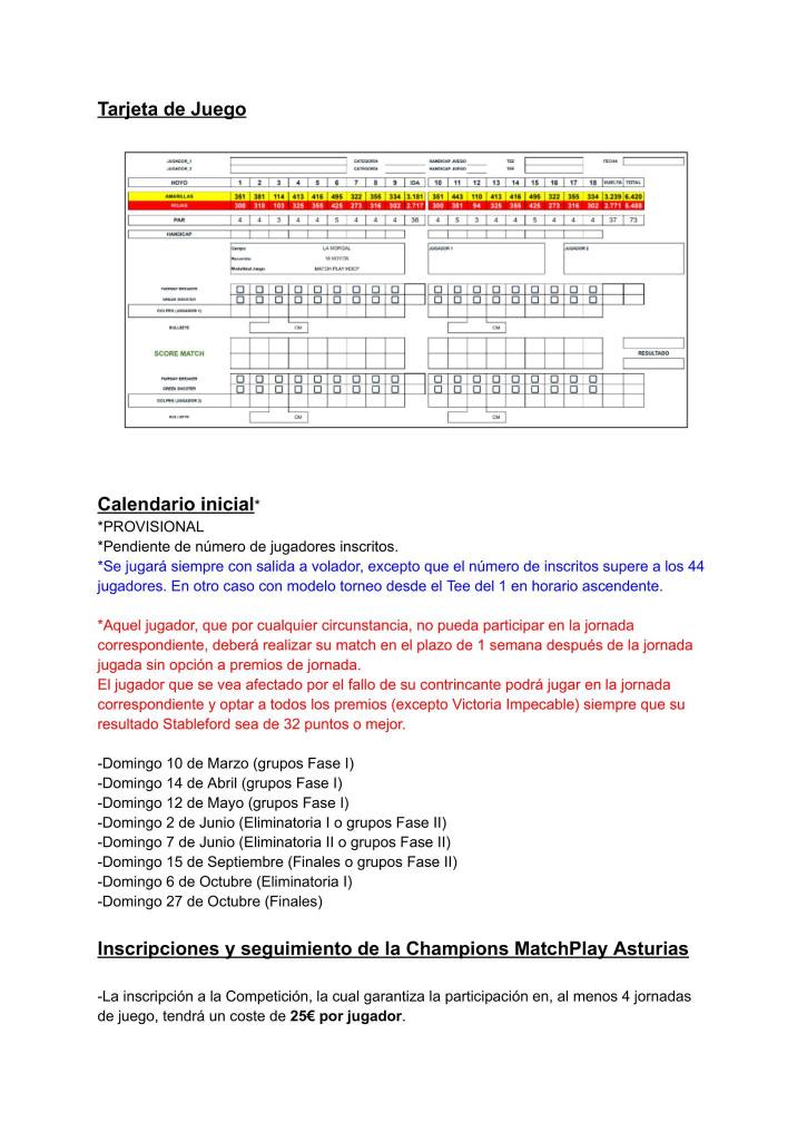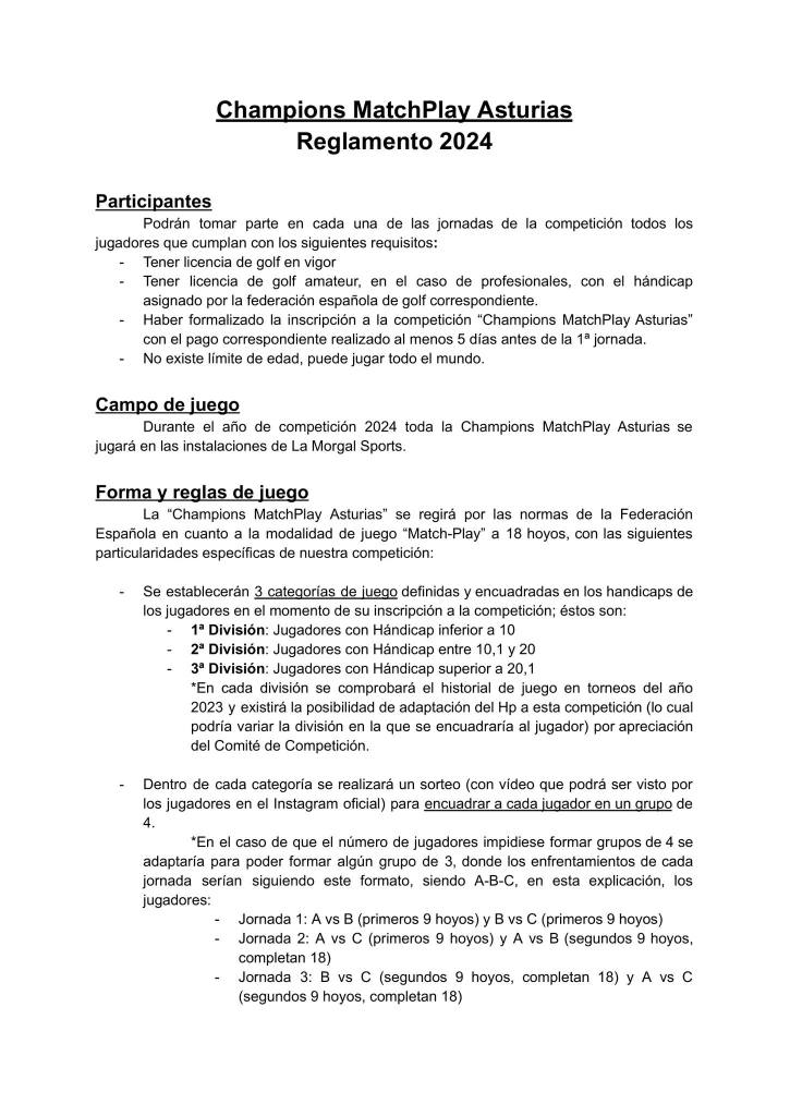Champions Match Play Asturias 2024 por Golf por Asturias en 19 noviembre, 2023 Nace el Champions Match Play Asturias 2024, dirigido a todos los jugadores de golf, con varias categorías, os dejamos el reglamento de esta interesante y diferente competición. Compártelo: Compartir en X (Se abre en una ventana nueva) X Comparte en Facebook (Se abre en una ventana nueva) Facebook Me gusta Cargando...