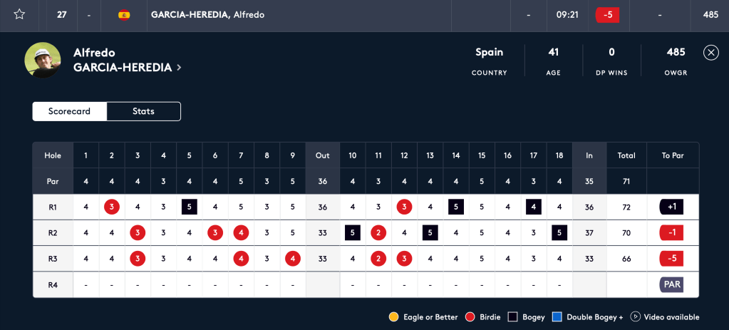 Alfredo Garcia -Heredia realiza una vuelta de -5 , tarjeta sin Bogei, del Fortinet de Australia
