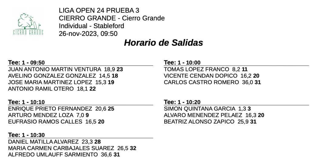 Salidas domingo 3ª jornada LIGA OPEN 23/24 – Cierro Grande Golf por Golf por Asturias en 26 noviembre, 2023 Compártelo: Compartir en X (Se abre en una ventana nueva) X Comparte en Facebook (Se abre en una ventana nueva) Facebook Me gusta Cargando...