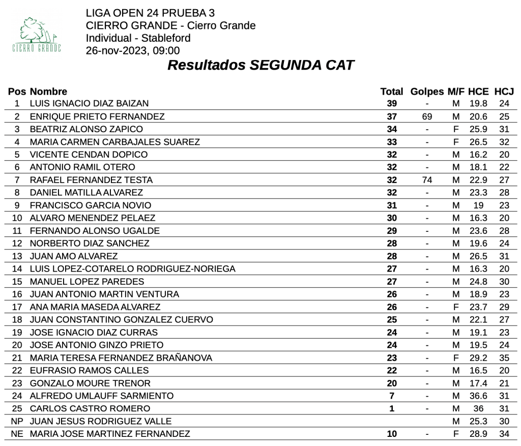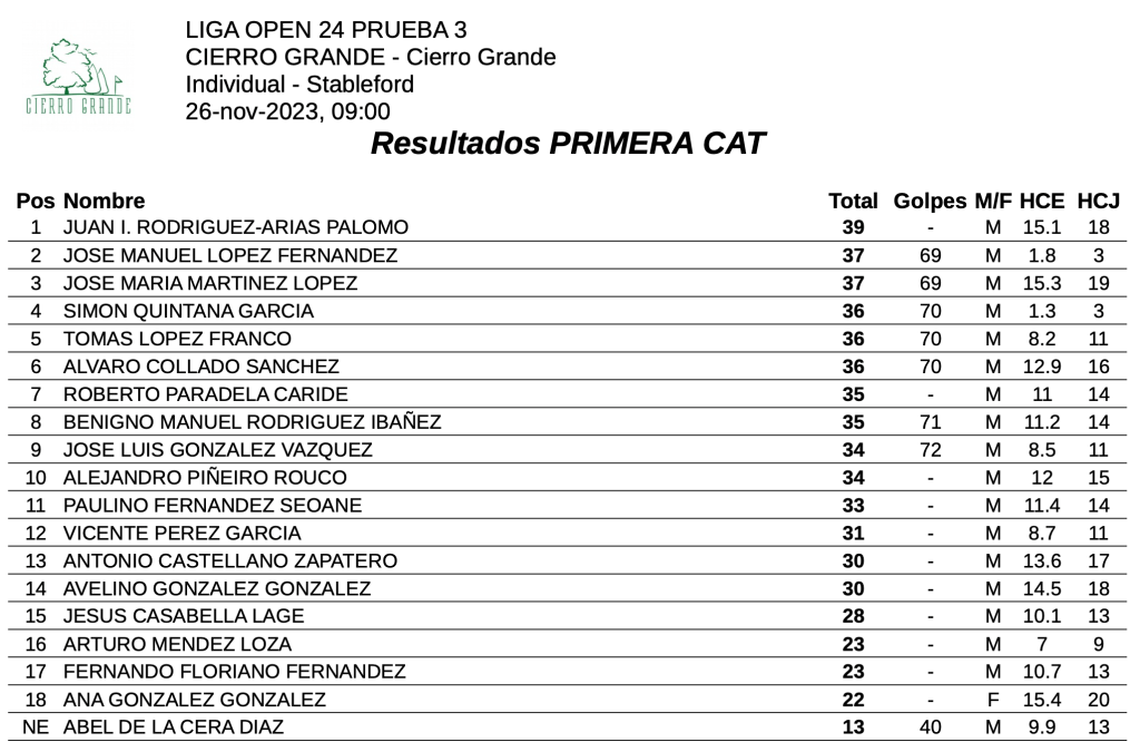 Resultados 3ª jornada LIGA OPEN 23/24 – Cierro Grande Golf por Golf por Asturias en 27 noviembre, 2023 CLASIFICACION 1ª CATEGORIA CLASIFICACION 2ª CATEGORIA Compártelo: Compartir en X (Se abre en una ventana nueva) X Comparte en Facebook (Se abre en una ventana nueva) Facebook Me gusta Cargando...
