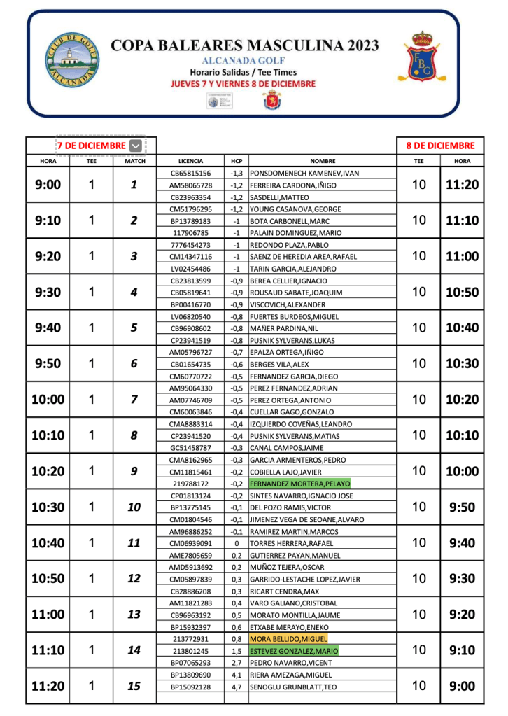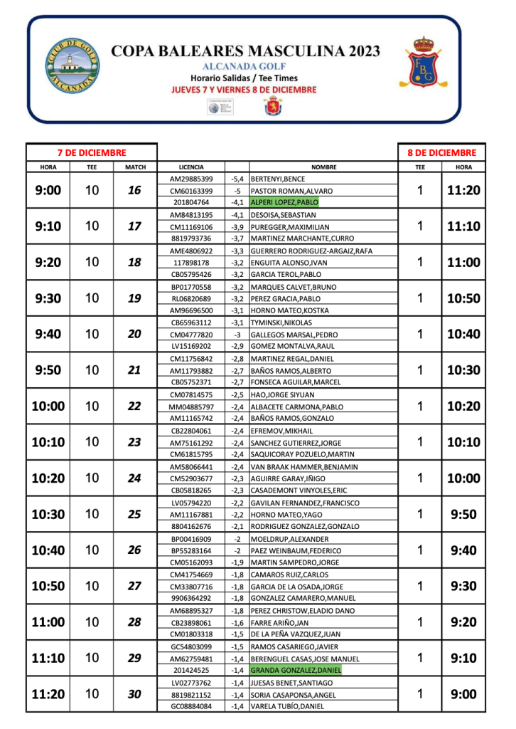 SALIDAS DIAS 7 Y 8 DESDE EL TEE DEL 10