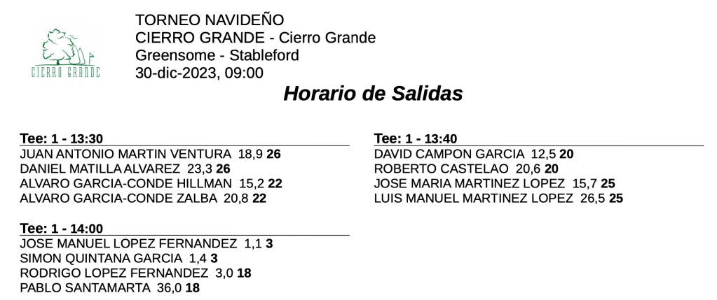 Salidas viernes Torneo Navideño 2023 / Cierro Grande Golf por Golf por Asturias en 29 diciembre, 2023 Compártelo: Haz clic para compartir en X (Se abre en una ventana nueva) X Haz clic para compartir en Facebook (Se abre en una ventana nueva) Facebook Me gusta Cargando...