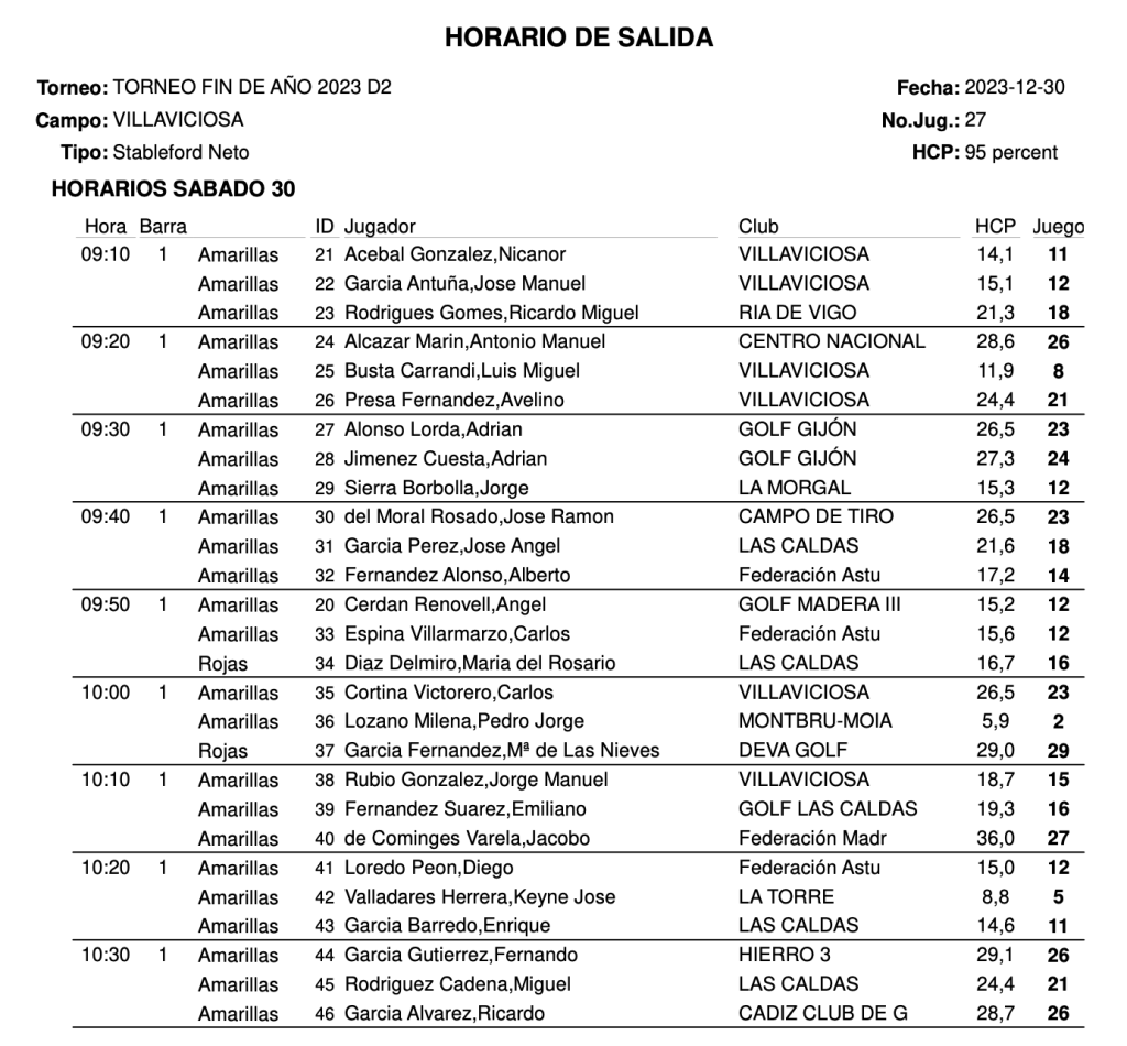 Salidas sábado Torneo Fin de Año 2023 / Villaviciosa Golf por Golf por Asturias en 30 diciembre, 2023 Compártelo: Haz clic para compartir en X (Se abre en una ventana nueva) X Haz clic para compartir en Facebook (Se abre en una ventana nueva) Facebook Me gusta Cargando...