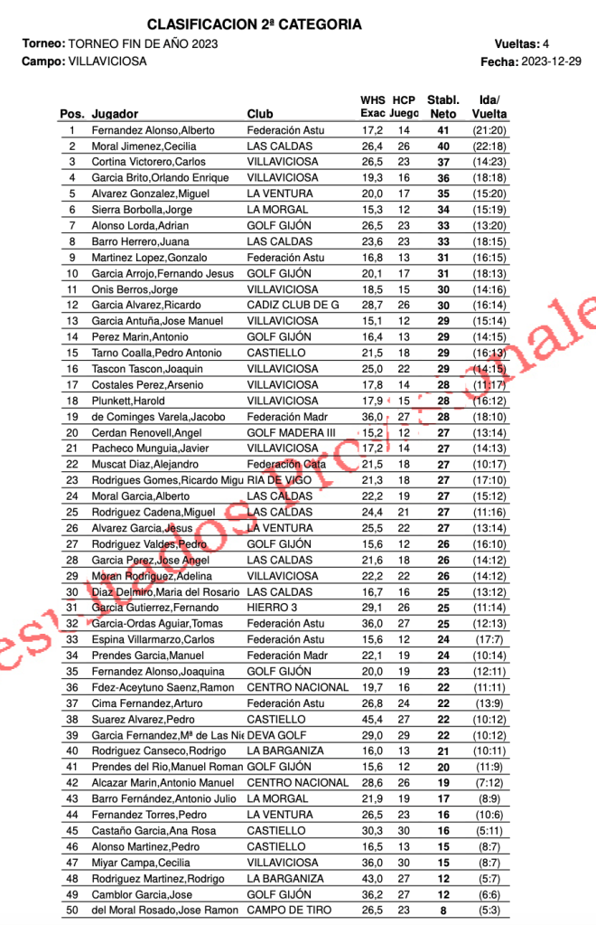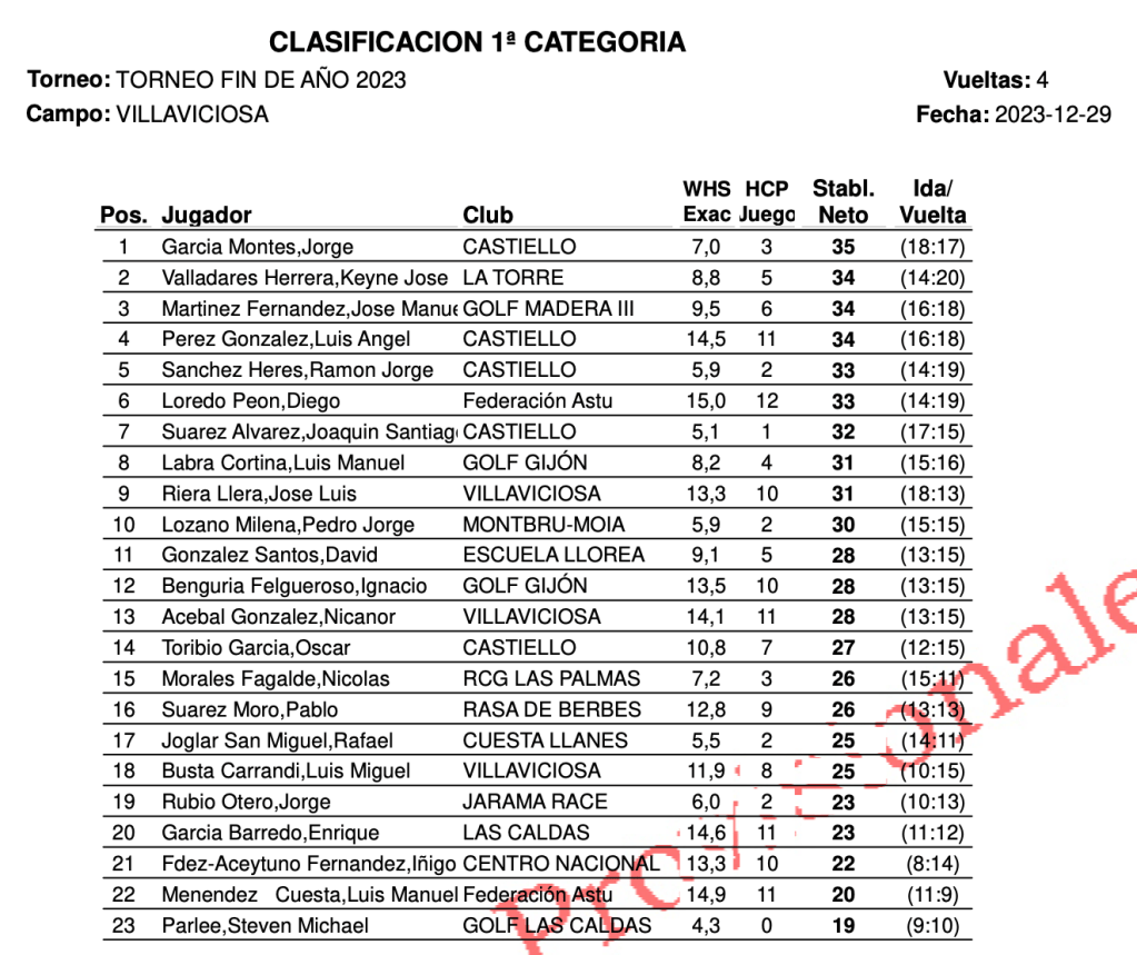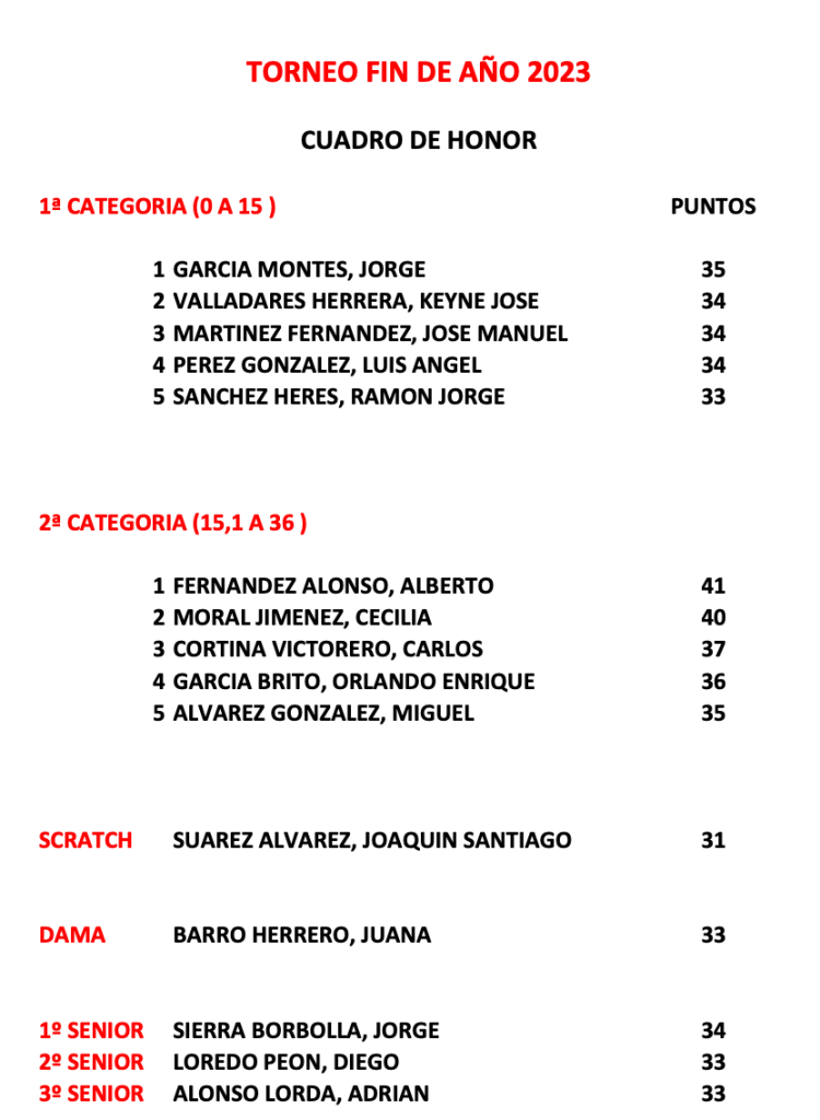 Resultados Torneo Final de año 2023 / Villaviciosa Golf por Golf por Asturias en 1 enero, 2024 CUADRO DE HONOR CLASIFICACION 1ª CATEGORIA CLASIFICACION 2ª CATEGORIA Compártelo: Compartir en X (Se abre en una ventana nueva) X Comparte en Facebook (Se abre en una ventana nueva) Facebook Me gusta Cargando...