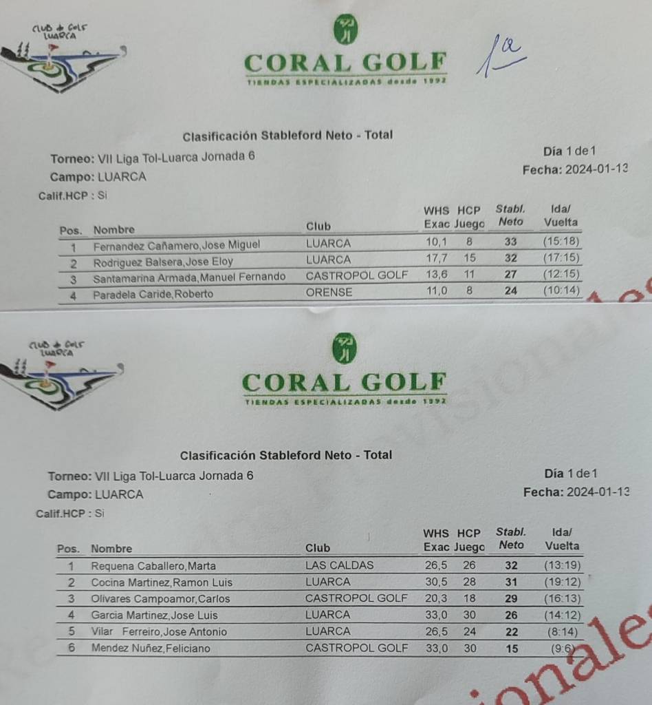 Resultados 6ª jornada Liga Occidente 23/24 – Luarca Golf por Golf por Asturias en 15 enero, 2024 Este fin de semana se celebro en el recorrido del Luarca Golf la 6ª jornada de la Liga Occidente 23/24, con los siguientes resultados. Compártelo: Compartir en X (Se abre en una ventana nueva) X Comparte en Facebook (Se abre en una ventana nueva) Facebook Me gusta Cargando...