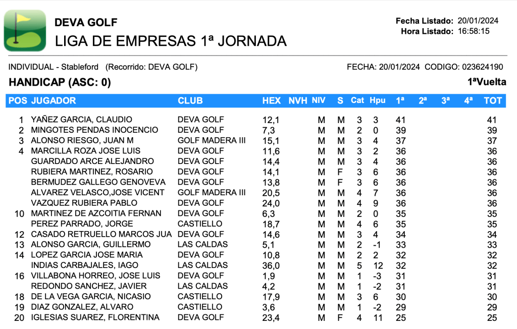 RESULTADOS 1ª JORNADA LIGA EMPRESAS 2024 / DEVA GOLF por Golf por Asturias en 20 enero, 2024 CLASIFICACION EQUIPOS CLASIFICACION PAREJAS CLASIFICACION INDIVIDUAL Compártelo: Compartir en X (Se abre en una ventana nueva) X Comparte en Facebook (Se abre en una ventana nueva) Facebook Me gusta Cargando...