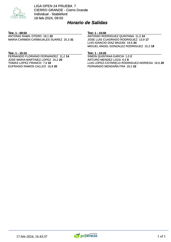 SALIDAS DOMINGO 7ª JORNADA LIGA OPEN / CIERRO GRANDE GOLF por Golf por Asturias en 17 febrero, 2024 Compártelo: Compartir en X (Se abre en una ventana nueva) X Comparte en Facebook (Se abre en una ventana nueva) Facebook Me gusta Cargando...