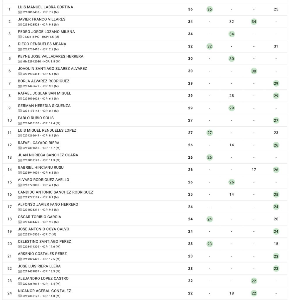 Resultados II Torneo Invierno 2024 / Villaviciosa Golf por Golf por Asturias en 20 febrero, 2024 CUADRO DE HONOR CLASIFICACION POR PUNTOS Compártelo: Compartir en X (Se abre en una ventana nueva) X Comparte en Facebook (Se abre en una ventana nueva) Facebook Me gusta Cargando...