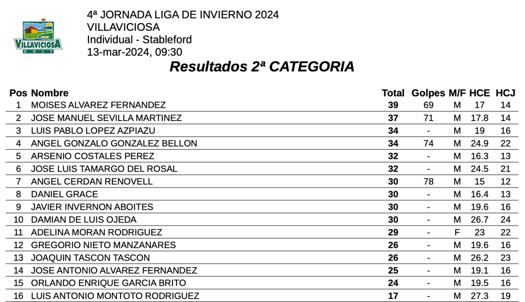 Resultados 4ª jornada Liga Invierno 2024 / Villaviciosa Golf por Golf por Asturias en 14 marzo, 2024 CLASIFICACION 1ª CATEGORIA CLASIFICACION 2ª CATEGORIA Compártelo: Compartir en X (Se abre en una ventana nueva) X Comparte en Facebook (Se abre en una ventana nueva) Facebook Me gusta Cargando...