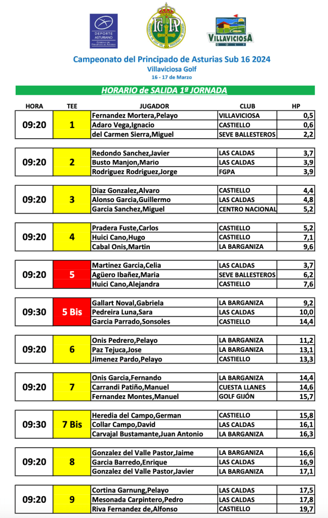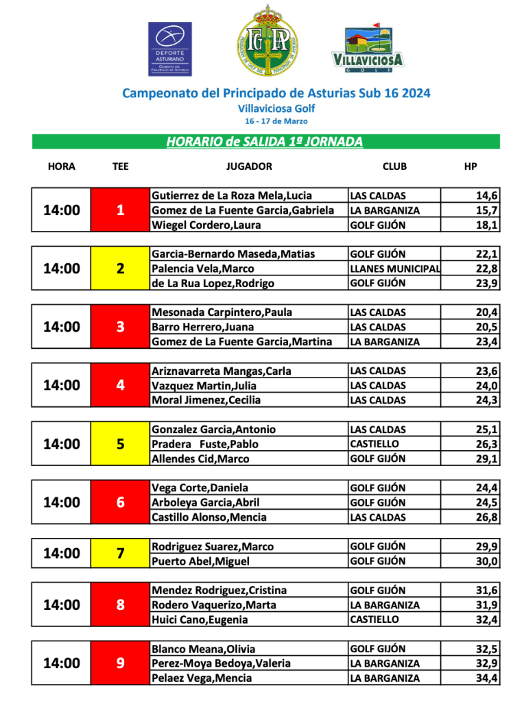 HORARIOS SALIDA 1ª JORNADA CTO. P. ASTURIAS SUB 16 / VILLAVICIOSA GOLF por Golf por Asturias en 15 marzo, 2024 SALIDAS MAÑANA SALIDAS TARDE Compártelo: Compartir en X (Se abre en una ventana nueva) X Comparte en Facebook (Se abre en una ventana nueva) Facebook Me gusta Cargando...