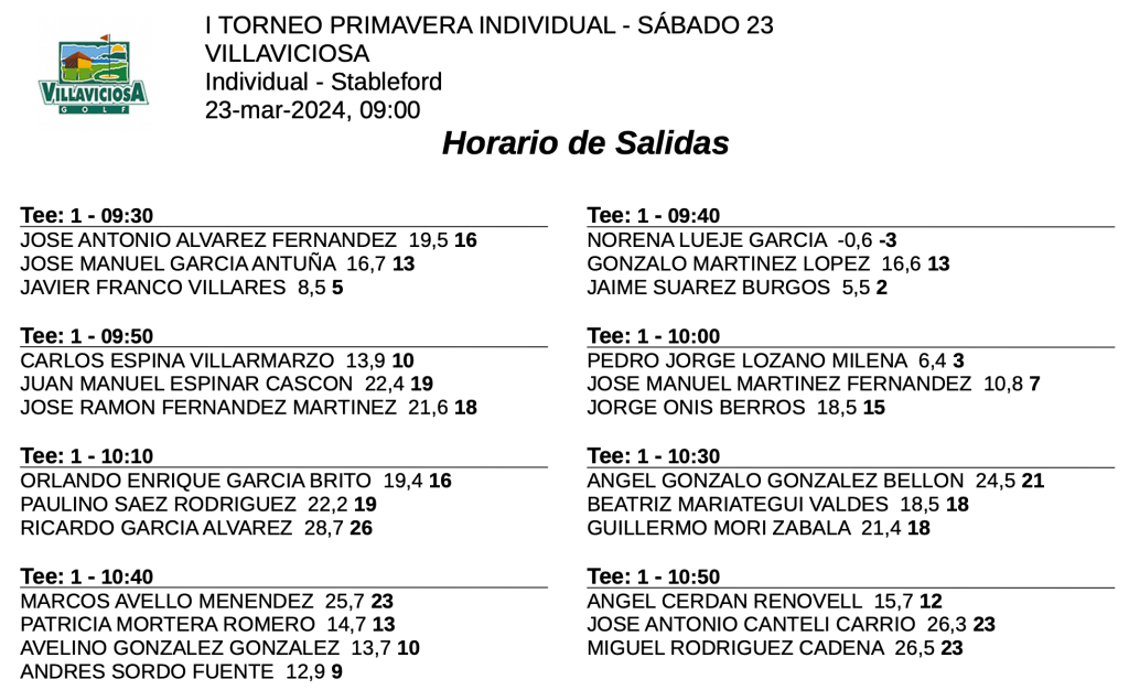 SALIDAS TORNEO PRIMAVERA 2024 – VILLAVICIOSA GOLF por Golf por Asturias en 23 marzo, 2024 SALIDAS VIERNES SALIDAS SABADO Compártelo: Compartir en X (Se abre en una ventana nueva) X Comparte en Facebook (Se abre en una ventana nueva) Facebook Me gusta Cargando...
