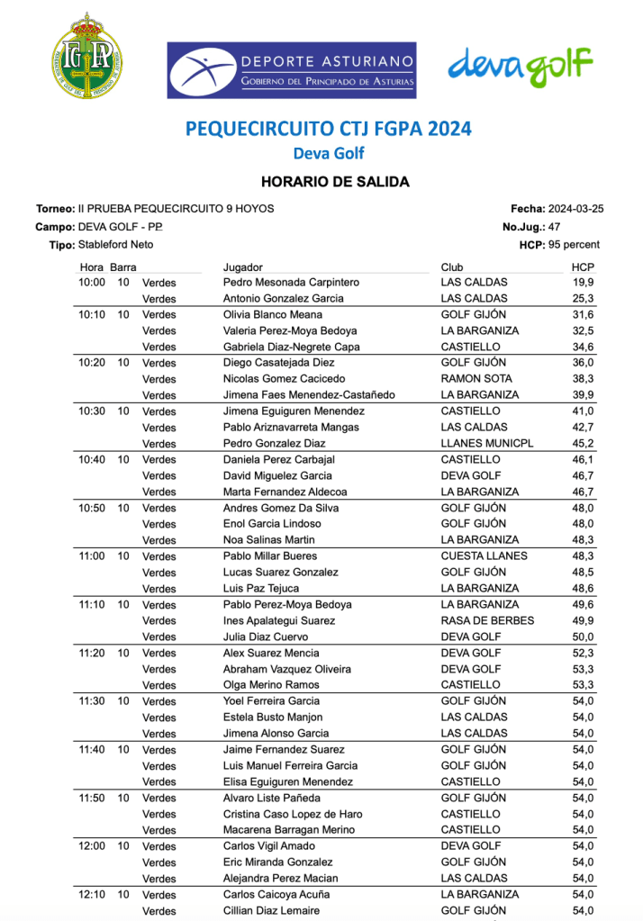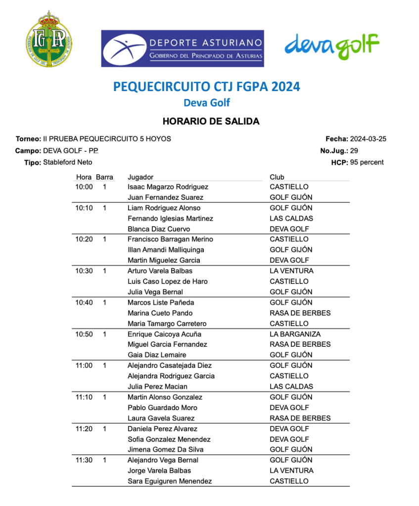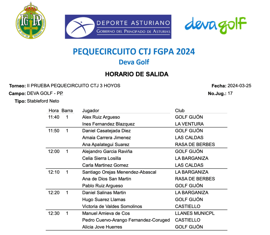 Horario de Salida II Prueba Pequecircuito CTJ FGPA 2024 / Deva Golf por Golf por Asturias en 25 marzo, 2024 SALIDAS 3 HOYOS SALIDAS 5 HOYOS SALIDAS 9 HOYOS Compártelo: Compartir en X (Se abre en una ventana nueva) X Comparte en Facebook (Se abre en una ventana nueva) Facebook Me gusta Cargando...