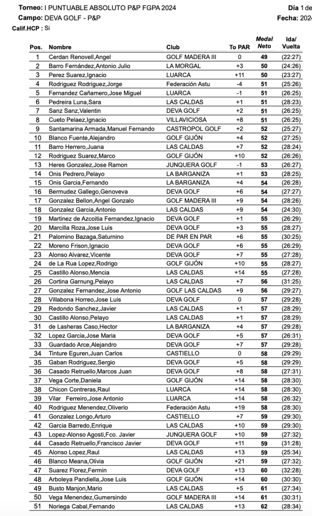 Resultados I Puntuable CTP&P FGPA 2024 / Deva Golf