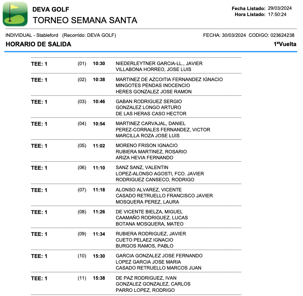 Salidas sábado Torneo Semana Santa / Deva Golf por Golf por Asturias en 30 marzo, 2024 Compártelo: Compartir en X (Se abre en una ventana nueva) X Comparte en Facebook (Se abre en una ventana nueva) Facebook Me gusta Cargando...