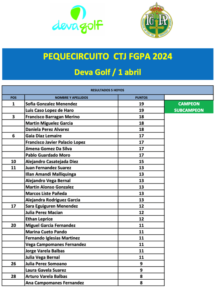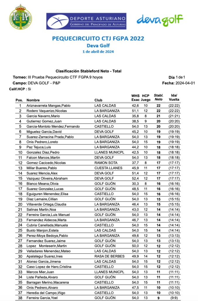 Resultados III Prueba Pequecircuito CTJ FGPA 2024 / Deva Golf por Golf por Asturias en 1 abril, 2024 CLASIFICACION 3 HOYOS CLASIFICACION 5 HOYOS CLASIFICACION 9 HOYOS FOTO FGPA Compártelo: Compartir en X (Se abre en una ventana nueva) X Comparte en Facebook (Se abre en una ventana nueva) Facebook Me gusta Cargando...