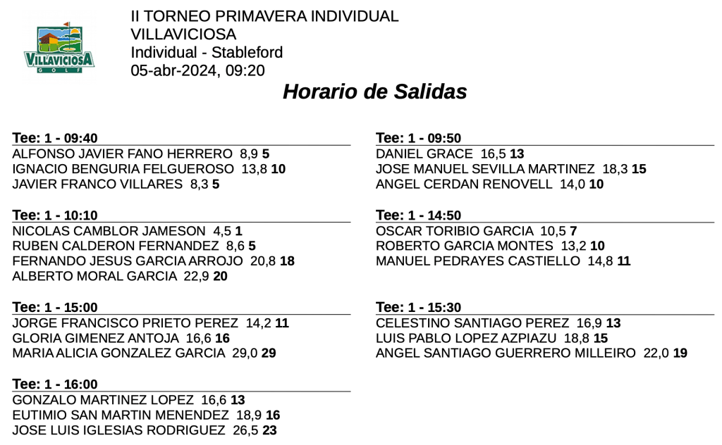 SALIDAS VIERNES II TORNEO PRIMAVERA INDIVIDUAL / VILLAVICIOSA GOLF por Golf por Asturias en 5 abril, 2024 Compártelo: Compartir en X (Se abre en una ventana nueva) X Comparte en Facebook (Se abre en una ventana nueva) Facebook Me gusta Cargando...