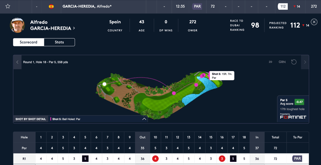 Por su parte Alfredo Garcia Heredia con tarjeta de Par del campo, ocupa el puesto 70º