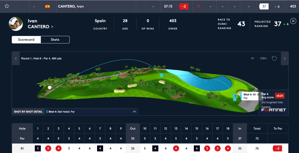 Ivan Cantero finaliza la primera jornada del 1ª jornada del Hero Dubai Desert Classic 2025 con una tarjeta de -2, se situa en el puesto 26º