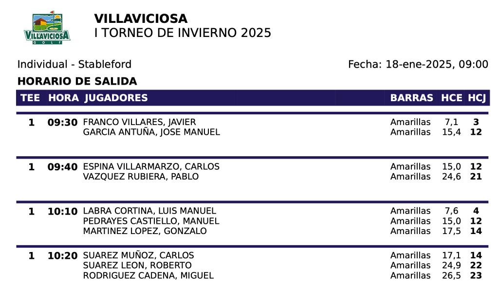 SALIDAS VIERNES Y SABADO I TORNEO INVIERNO 2025 / VILLAVICIOSA GOLF por Golf por Asturias en 18 enero, 2025 SALIDAS VIERNES SALIDAS SABADO Compártelo: Haz clic para compartir en X (Se abre en una ventana nueva) X Haz clic para compartir en Facebook (Se abre en una ventana nueva) Facebook Me gusta Cargando...