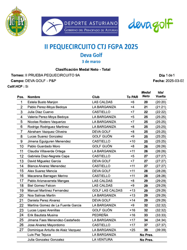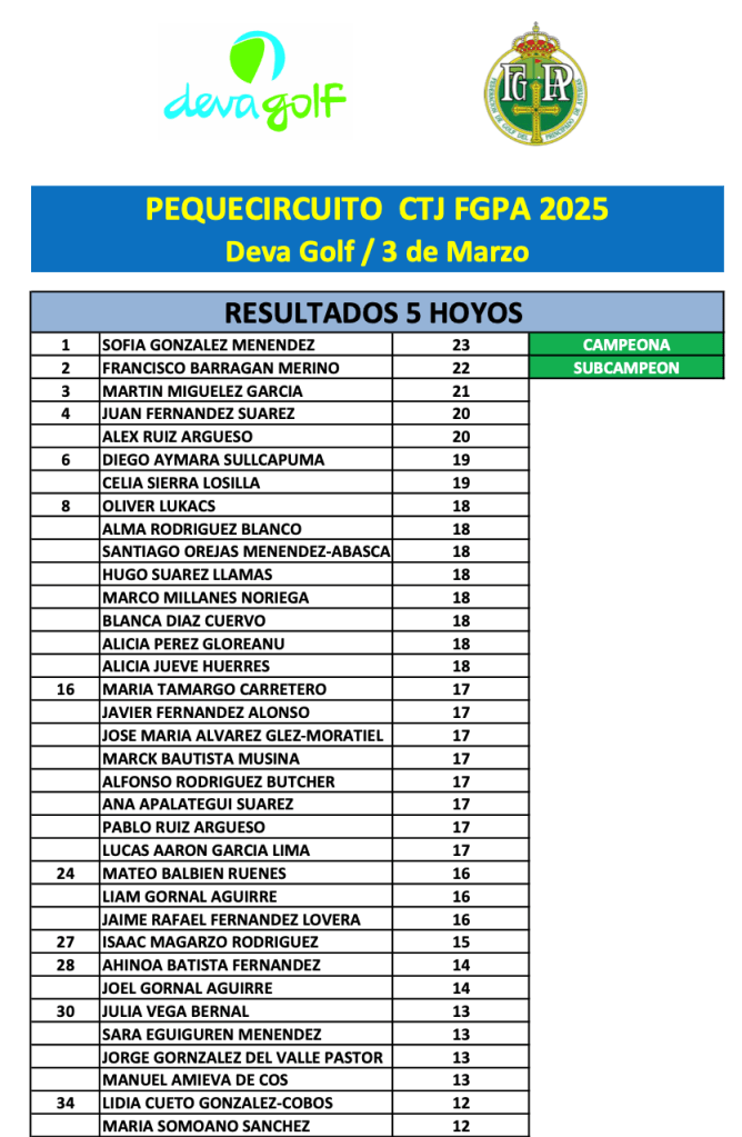 Resultados II prueba PEQUECIRCUITO 2025 / Deva Golf