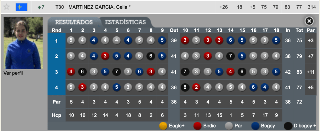 La jugadora asturiana finaliza su ultima jornada con 77, mejorando su tarjeta de ayer, al final sumo 314 golpes,