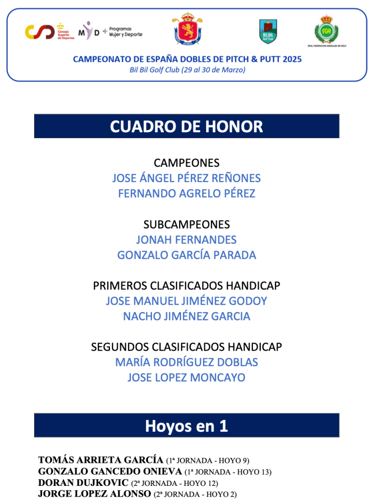 Jose Angel Perez Reñones y Fernando Agrelo Perez, ganan el Campeonato de España Dobles de P&P 2025, prueba desarrollada en el recorrido de Bil Bil Golf en Málaga.