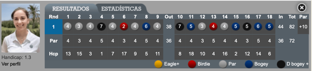 Nuestra unica representante en el Campeonato de España Mid Amateur Femenino 2025 Norena Lueje, entrega una tarjeta de 82 golpes, lo que la situa en el puesto decimotercero de la clasificación.