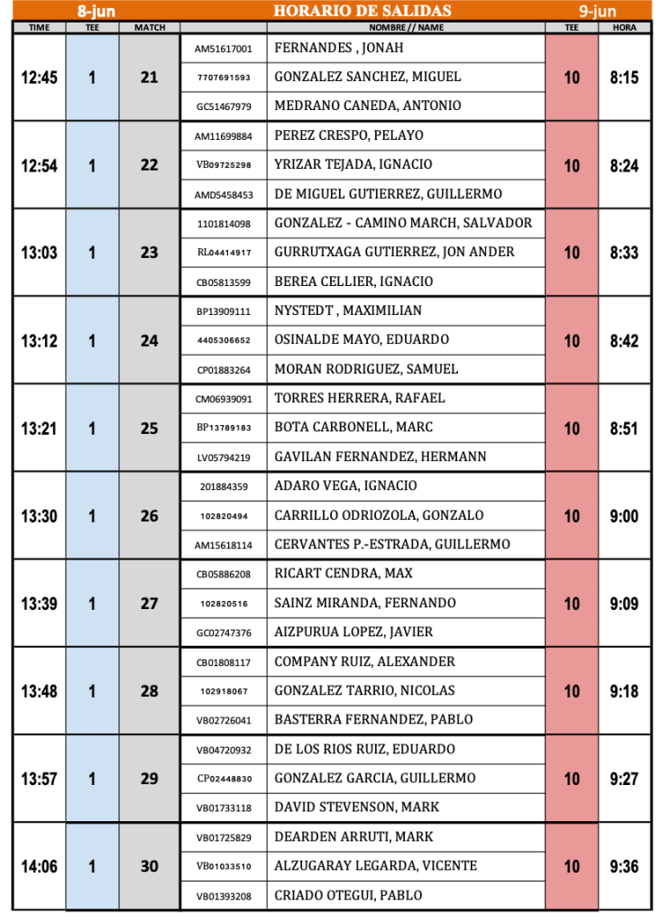 Horario de Salida 1ª y 2ª Campeonato de España Absoluto Amateur Masculino / RCG San Sebastian por Golf por Asturias en 8 junio, 2025 Compártelo: Haz clic para compartir en X (Se abre en una ventana nueva) X Haz clic para compartir en Facebook (Se abre en una ventana nueva) Facebook Me gusta Cargando...