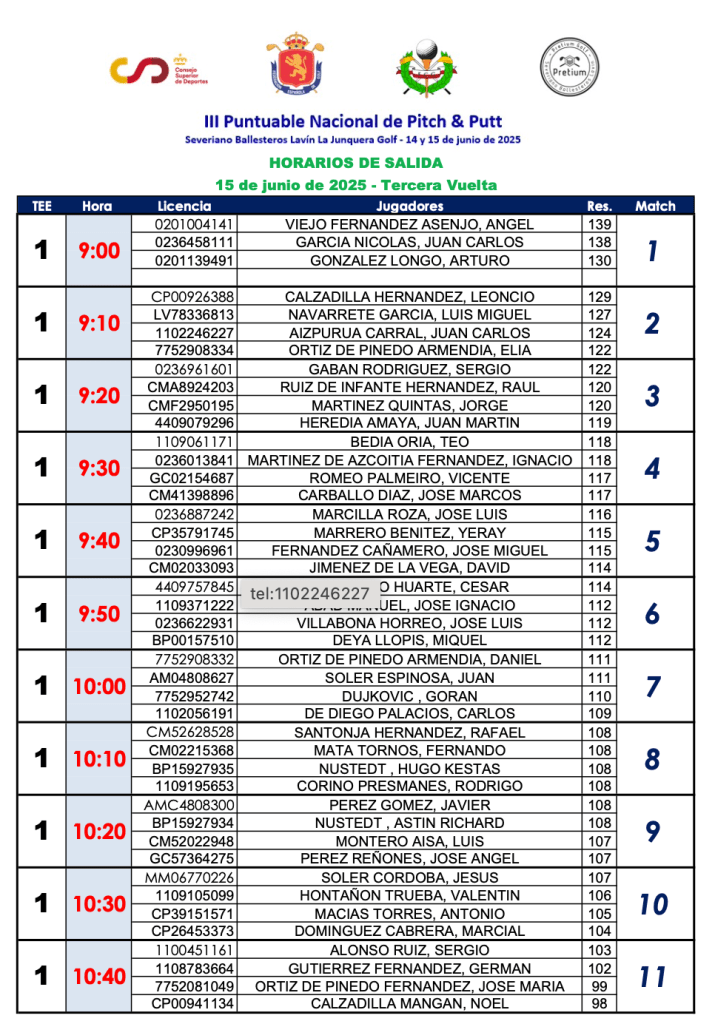 Despues de realizar dos vueltas al campo de La Junquera golf, Jose Luis Marcilla es el mejor asturiano clasificado del III puntuable nacional de P&P 2025 en la primera jornada, ocupa el puesto 17º de un total de 44 jugadores inscritos, Jose Luis Villabona se situa en el 25º, 28º Jose Miguel Fdez. Cañamero, 36º para Sergio Gaban, Ignacio Martinez de Azcoitia se posiciona en el 39º, 41º para Arturo González Longo, 42º Juan Carlos Nicolas y 43º Angel Viejo