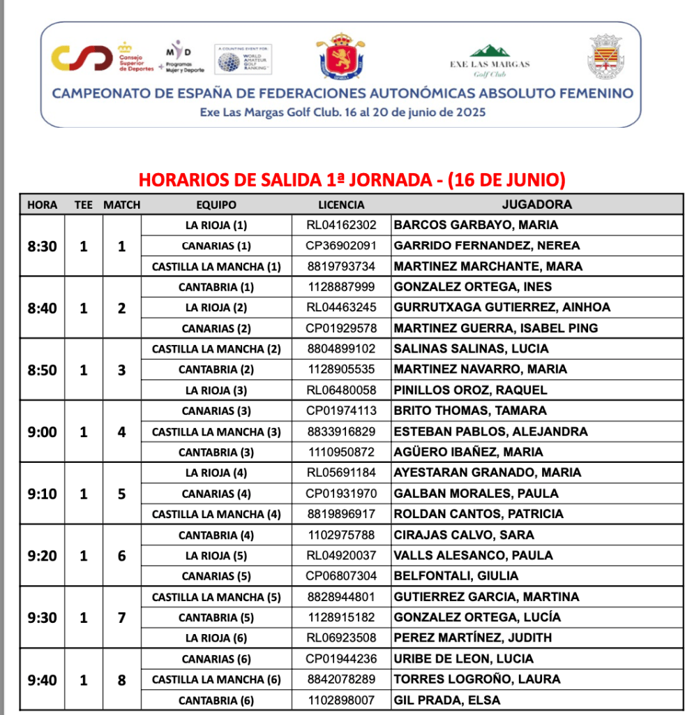 Horarios 1ª jornada Stroke Play Campeonato España FF AA Absoluto Femenino 2025 / Margas Golf por Golf por Asturias en 16 junio, 2025 Compártelo: Compartir en X (Se abre en una ventana nueva) X Comparte en Facebook (Se abre en una ventana nueva) Facebook Me gusta Cargando...