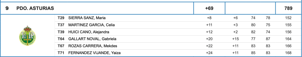 Después de celebrarse la segunda jornada de Stroke Play, el combinado femenino asturiano finaliza en la novena plaza con 789 golpes al igual que las jugadoras de Navarra, los enfrentamientos de Match-Play nos emparejan en esta jornada con el equipo de la comunidad de La Rioja.