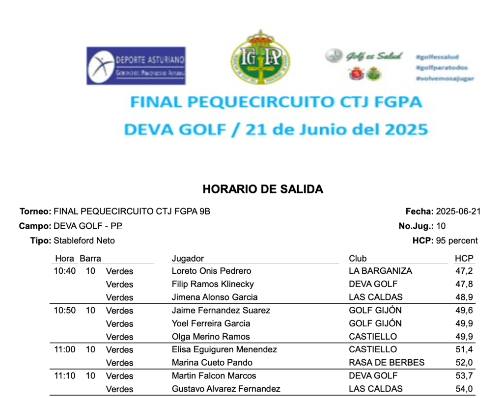 FINAL PEQUECIRCUITO 2025 – HORARIOS / DEVA GOLF por Golf por Asturias en 21 junio, 2025 SALIDAS 3 HOYOS SALIDAS 5 HOYOS SALIDAS 9 HOYOS A SALIDAS 9 HOYOS B Compártelo: Haz clic para compartir en X (Se abre en una ventana nueva) X Haz clic para compartir en Facebook (Se abre en una ventana nueva) Facebook Me gusta Cargando...