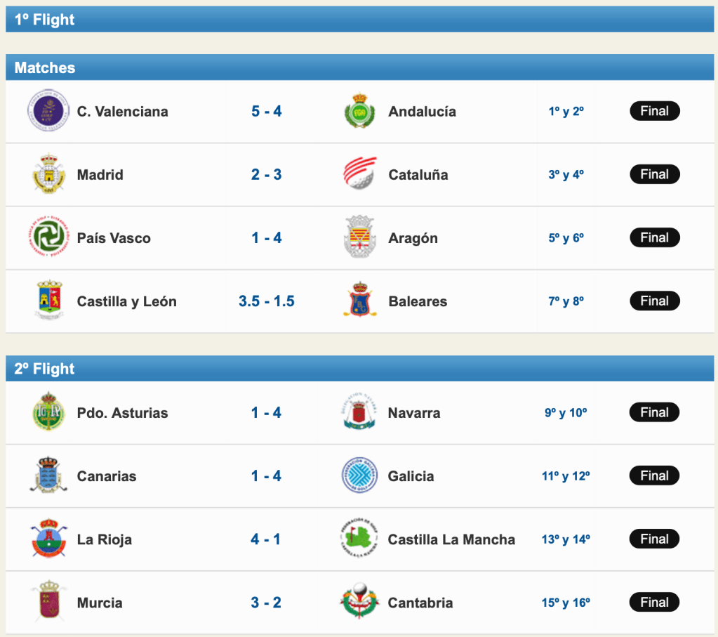 En la ultima jornada nuestras jugadoras se enfrentaban al combinado de la comunidad Navarra, contra las que perdieron 4&1, clasificándoselos en la décima plaza, segundas del 2º Flight, tras dos jornadas de Stroke Play situarse en 9ª posición y vencer en primera jornada a La Rioja, en la segunda a Canarias y en la ultima perder contra las jugadoras navarras.