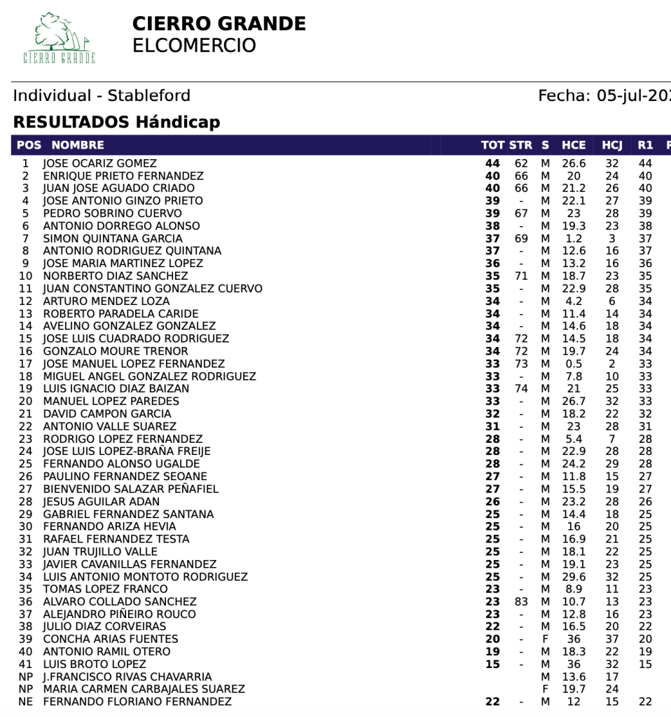 Resultados clasificatorio «El Comercio»2025 / Cierro Grande Golf por Golf por Asturias en 8 julio, 2025 1º Clasificado José Ocáriz Gómez 2º Clasificado Enrique Prieto Fernández 3º Clasificado Juan José Aguado Criado Scratch Simón Quintana García Senior José Antonio Gínzo Prieto Compártelo: Haz clic para compartir en X (Se abre en una ventana nueva) X Haz clic para compartir en Facebook (Se abre en una ventana nueva) Facebook Me gusta Cargando...
