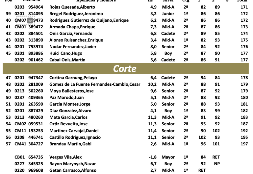 CARLOS FDEZ.MORTERA Y CELIA MARTINEZ LIDERAN LA SEGUNDA JORNADA DEL CAMPEONATO ABSOLUTO DEL P. DE ASTURIAS 2025