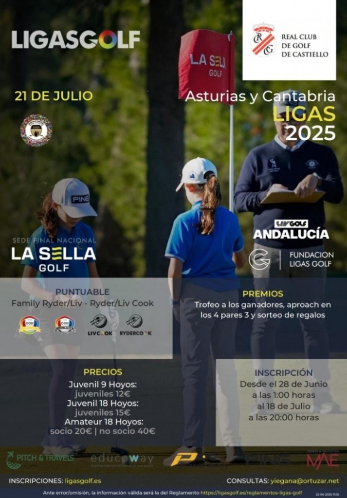 El CTJ FGPA informa sobre la celebración del TORNEO INFANTIL LIGAS GOLF PRUEBA VALEDERA FGPA que tendrá lugar en el RCG Castiello el próximo Lunes 21 de Julio del 2025 se trata de una Prueba Valedera FGPA Sub 16 e Infantil 2026.