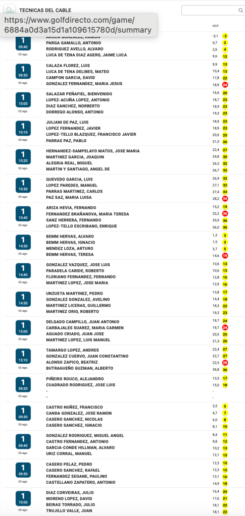 HORARIOS SALIDAS TORNEO TECNICAS DEL CABLE 2025 / CIERRO GRANDE GOLF por Golf por Asturias en 3 agosto, 2025 Compártelo: Haz clic para compartir en X (Se abre en una ventana nueva) X Haz clic para compartir en Facebook (Se abre en una ventana nueva) Facebook Me gusta Cargando...