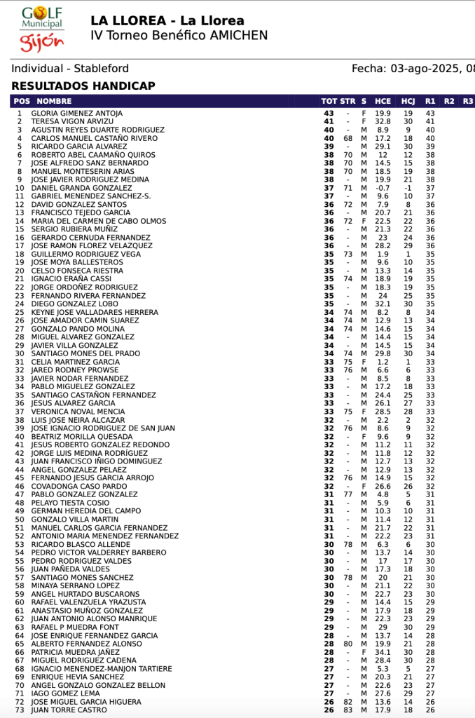 Resultados IV Torneo de Golf BENÉFICO AMICHEN / CM Golf La Llorea por Golf por Asturias en 4 agosto, 2025 CUADRO DE HONOR CLASIFICACION HANDICAP Compártelo: Haz clic para compartir en X (Se abre en una ventana nueva) X Haz clic para compartir en Facebook (Se abre en una ventana nueva) Facebook Me gusta Cargando...