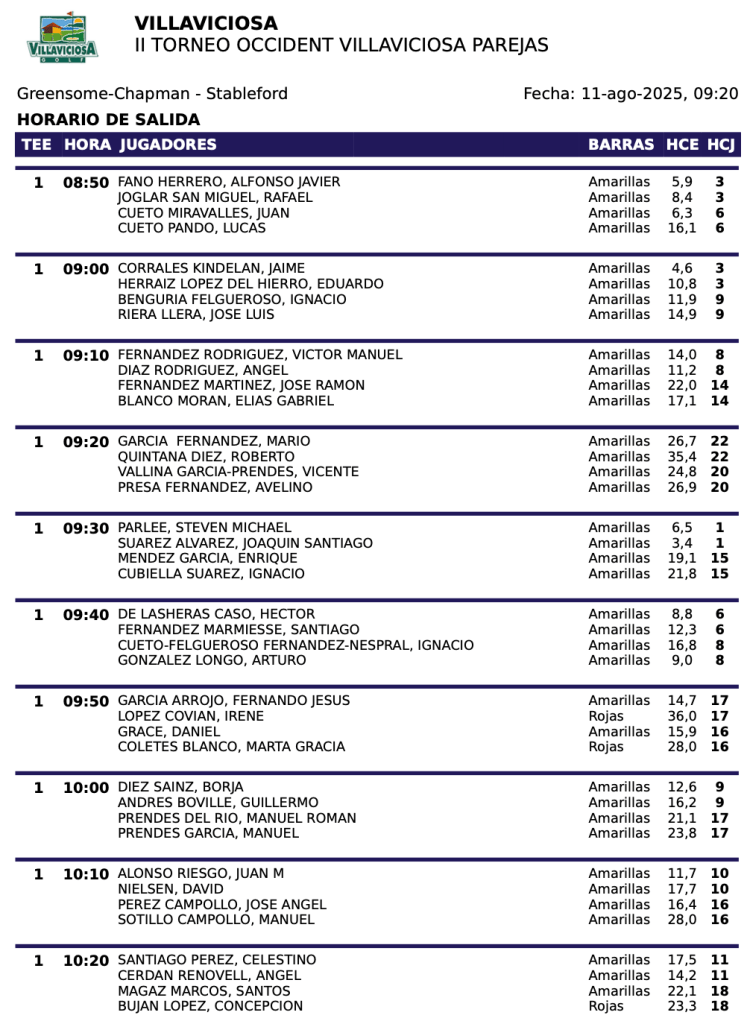SALIDAS LUNES TORNEO OCCIDENT ( AG R. CAYADO ) PAREJAS / VILLAVICIOSA GOLF por Golf por Asturias en 10 agosto, 2025 Compártelo: Haz clic para compartir en X (Se abre en una ventana nueva) X Haz clic para compartir en Facebook (Se abre en una ventana nueva) Facebook Me gusta Cargando...