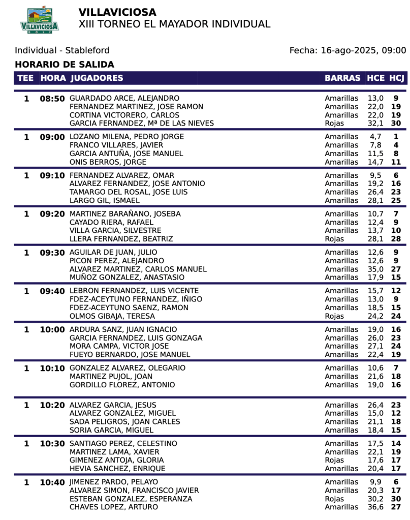 SALIDAS SABADO TORNEO «EL MAYADOR » INDIVIDUAL 2025 / VILLAVICIOSA GOLF por Golf por Asturias en 16 agosto, 2025 Compártelo: Haz clic para compartir en X (Se abre en una ventana nueva) X Haz clic para compartir en Facebook (Se abre en una ventana nueva) Facebook Me gusta Cargando...