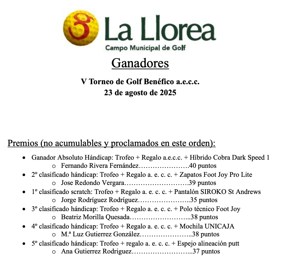 RESULTADOS BENEFICO AECC 2025 / C.M. GOLF LA LLOREA por Golf por Asturias en 23 agosto, 2025 Compártelo: Haz clic para compartir en X (Se abre en una ventana nueva) X Haz clic para compartir en Facebook (Se abre en una ventana nueva) Facebook Me gusta Cargando...