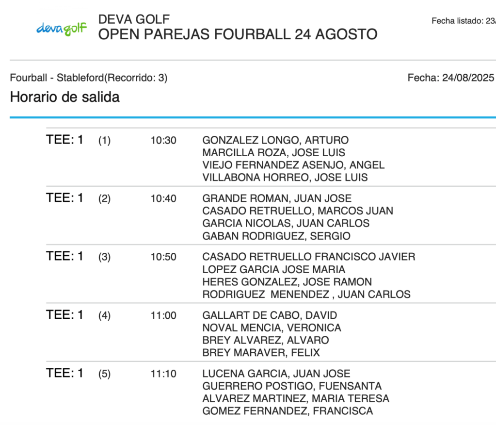 HORARIOS TORNEO PAREJAS FOURBALL 24 AGOSTO 2025 / DEVA GOLF por Golf por Asturias en 24 agosto, 2025 Compártelo: Haz clic para compartir en X (Se abre en una ventana nueva) X Haz clic para compartir en Facebook (Se abre en una ventana nueva) Facebook Me gusta Cargando...