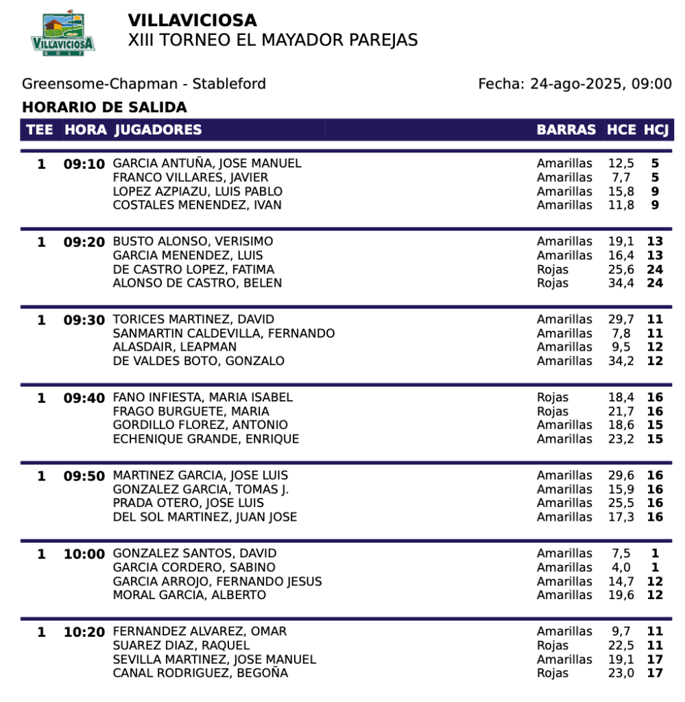 SALIDAS DOMINGO TORNEO » EL MAYADOR» 2025 (PAREJAS)/ VILLAVICIOSA GOLF por Golf por Asturias en 24 agosto, 2025 Compártelo: Haz clic para compartir en X (Se abre en una ventana nueva) X Haz clic para compartir en Facebook (Se abre en una ventana nueva) Facebook Me gusta Cargando...