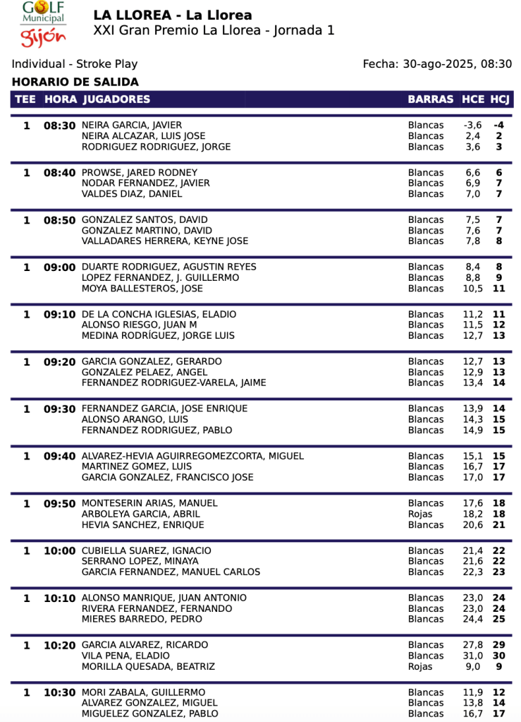 Horarios sábado XXI Gran Premio La Llorea 2025 / C.M. Golf La Llorea por Golf por Asturias en 30 agosto, 2025 Compártelo: Compartir en X (Se abre en una ventana nueva) X Comparte en Facebook (Se abre en una ventana nueva) Facebook Me gusta Cargando...