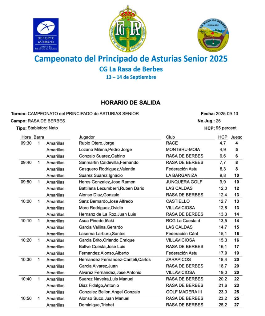 Horario de Salida 1ª Jornada Campeonato de Principado de Asturias Senior 2025 / Golf La Rasa de Berbes por Golf por Asturias en 12 septiembre, 2025 Compártelo: Haz clic para compartir en X (Se abre en una ventana nueva) X Haz clic para compartir en Facebook (Se abre en una ventana nueva) Facebook Me gusta Cargando...
